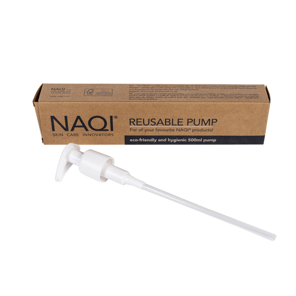 De herbruikbare NAQI® pomp past op de NAQI® flessen van 500 ml of op de NAQI 5 l bidons.