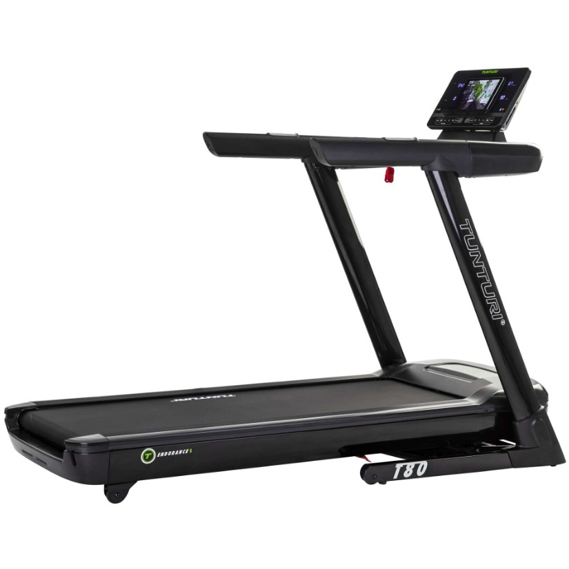 De Tunturi T80 beschikt over T-flex Comfort Top schokdemping en een Cross TIP anti-slip loopmat. De loopplaat heeft een dikte van 21mm en een max. gebruikersgewicht van 150kg. Dankzij de optionele revalidatie handrails heeft de gebruiker een extra steun tijdens het wandelen of joggen.