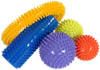 De Mambo Massage Bal - Roller - en Ring worden gebruikt om spieren te ontspannen en werken verkwikkend door drukpunten te bewerken. Het verstevigt handen en voeten en verbetert de coördinatie en flexibiliteit. Ze kunnen zowel voor massagetherapie als voor behendigheidstraining gebruikt worden.