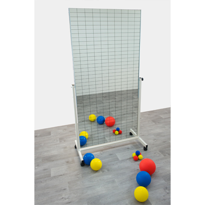 De 4mm dikke spiegel is voorzien van veiligheidsfolie, bij glasbreuk zal de spiegel niet uiteen spatten. Doordat de scherven op de folie blijven hangen is de kans op eventueel letsel bij glasbreuk veel kleiner. De spiegel inclusief de veiligheidsfolie zijn verlijmd op een polystyreen plaat en afgewerkt met een witte MDF plaat. Het geheel wordt gedragen door een aluminium profiel.