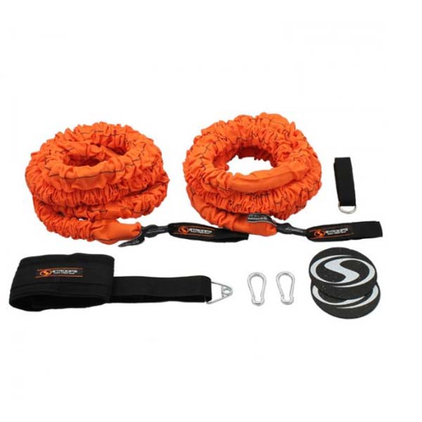 Hij bestaat uit 2 battle ropes, 1 powel pull belt, 2 karabijnen, 2 ankers en 2 agility dots.